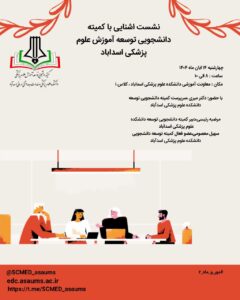 نشست آشنایی با کمیته دانشجویی توسعه آموزش دانشکده…اخبار کمیته دانشجویی توسعه آموزش4th نوامبر 2025⚜️نشست آشنایی با کمیته دانشجویی توسعه آموزش دانشکده علوم پزشکی اسدآباد ⚜️ 📆چهارشنبه ۱۳ آبان ماه۱۴۰۴ ⏰ساعت ۸تا ۱۰ 📍معاونت دانشکده علوم…
