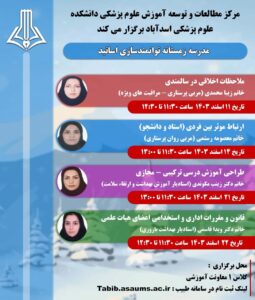 مدرسه زمستانه توانمندسازی اساتیداخبارکمیته توانمندسازی25th فوریه 2025مرکز مطالعات و توسعه آموزش علوم پزشکی دانشکده علوم پزشکی اسدآباد برگزار می کند: مدرسه زمستانه توانمندسازی اساتید زمان و تاریخ کارگاه ها…
