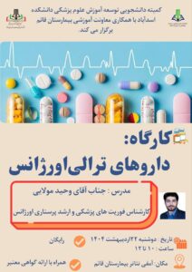 کارگاه داروهای ترالی اورژانساخبارکارگاه ها12th می 2025📣 کمیته دانشجویی توسعه آموزش علوم پزشکی دانشکده علوم پزشکی اسدآباد با همکاری معاونت آموزشی بیمارستان قائم برگزار میکند: 🔴 کارگاه “…