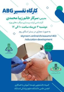 کارگاه ” تفسیر ABG “کارگاه هاکارگاه های کمیته دانشجویی توسعه آموزش21st دسامبر 2024کمیته دانشجویی توسعه علوم پزشکی با همکاری انجمن علمی دانشکده علوم پزشکی اسدآباد برگزار میکند: 🔴 کارگاه ” تفسیر ABG ” …